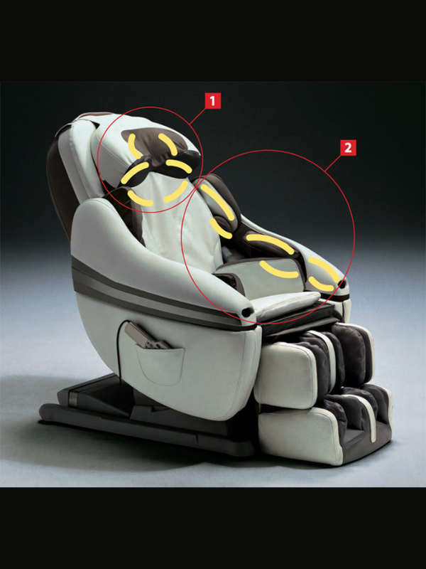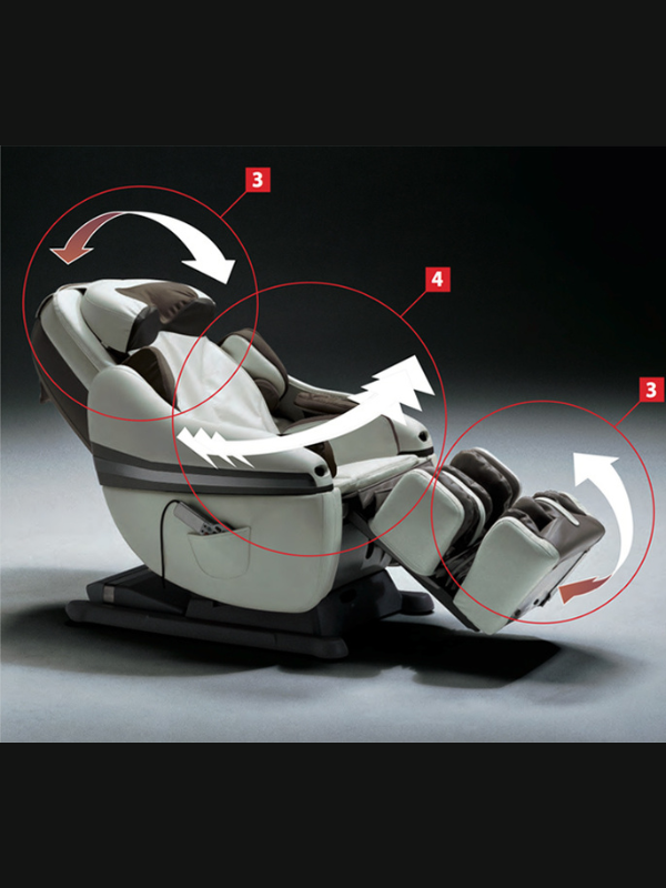Le fauteuil est également doté d'une chaleur accrue au niveau du dossier et de l'assise, chaque élément de chauffage étant réglable indépendamment. La pression maximale de l'air dans les chambres de massage a été augmentée, ce qui vous permet de bénéficier d'un massage plus intense. De plus, les inserts shiatsu procurent un massage d'acupression aux pieds, et les accoudoirs présentent des mouvements plus avancés et plus complexes pour un confort encore plus grand.
